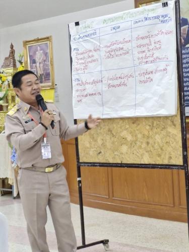 2) กิจกรรมแบ่งกลุ่มแลกเปลี่ยนเรียนรู้ หัวข้อความคาดหวังของประชาชนต่อการขับเคลื่อนงานพัฒนาชุมชนและความต้องการของสำนักงานพัฒนาชุมชนในการทำงานร่วมกับผู้นำชุมชน โดย นายเมธาสิทธิ์ สิริจันทร์ชื่น ผู้อำนวยการกลุ่มงานบริการทางวิชาการ